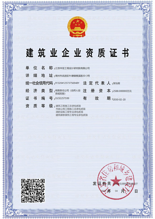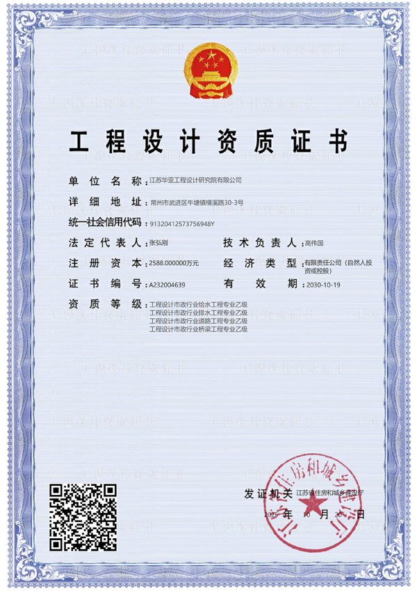 2020年06月獲得裝修裝飾工程專業承包貳級資質;2020年12月獲得市政行業(道路工程、橋梁工程、給水工程、排水工程)專業乙級設計資質。